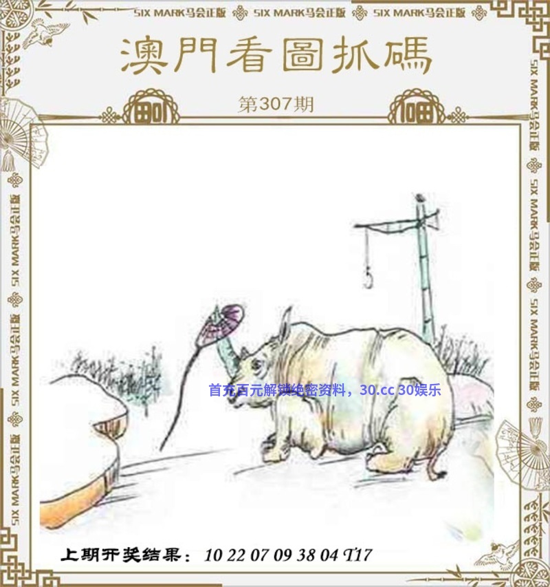 【妙解看图抓码】307期:图中有一只犀牛,它的角上挂着一个像捕蝇草一样的装置,旁边有一个带有钩子的木杆。